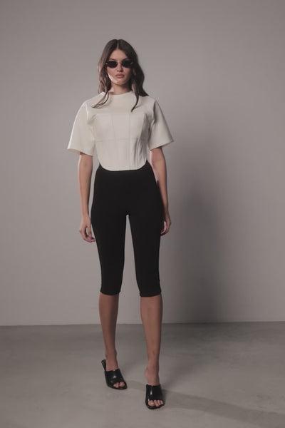 O combinație rafinată între structură și minimalism, topul cu structură tip corset "Contour" aduce un aer modern eleganței de zi cu zi. Realizat dintr-un material premium moale si elastic, acest model se remarcă prin designul frontal inspirat de corset, care conturează subtil silueta.