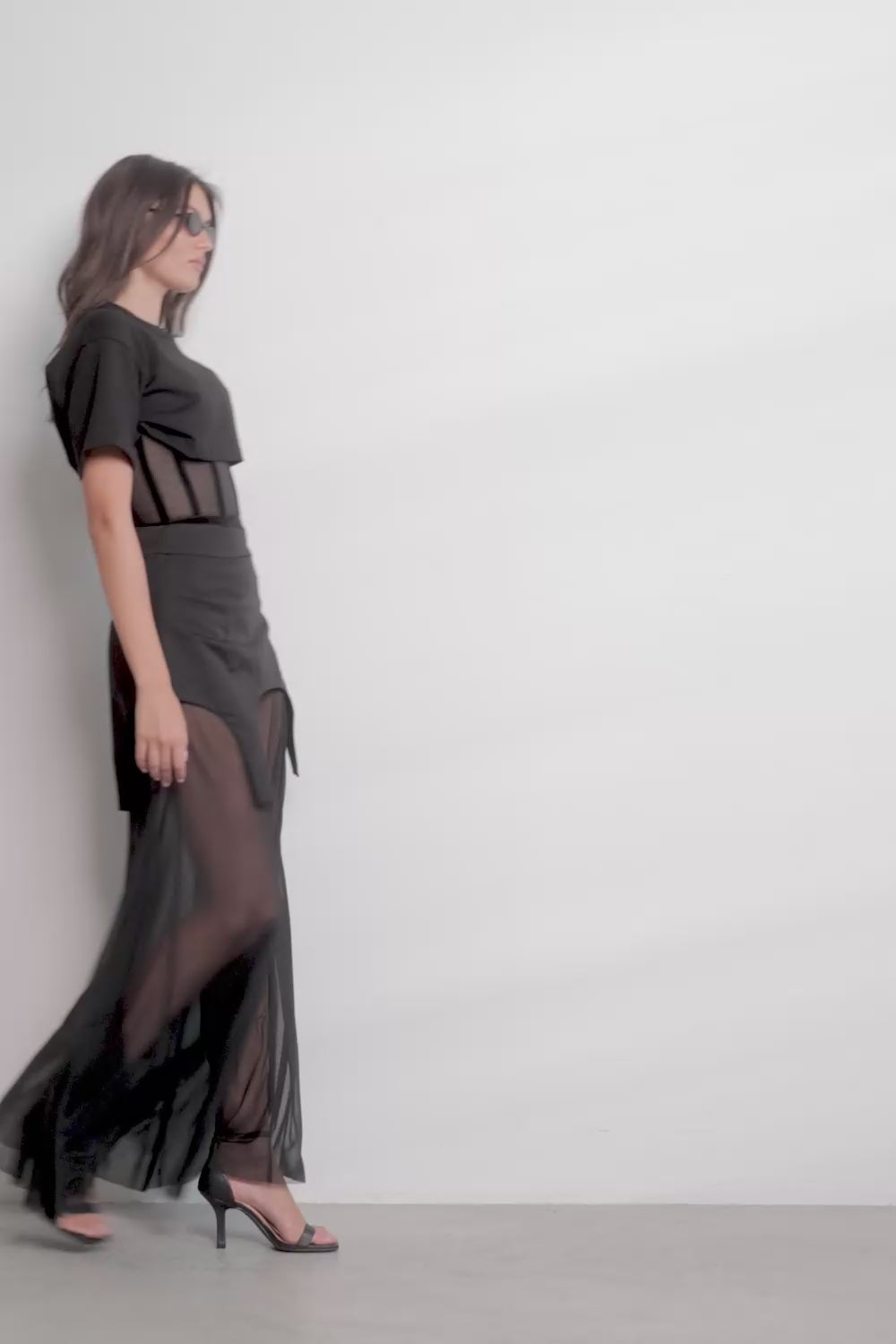 Topul „Organza” pentru femei de la Atelier Hamza îmbină eleganța relaxată cu feminitatea structurată. Croiala oversized în partea superioară contrastează armonios cu corsetul din organza, reglabil prin fermoarul discret de la spate.