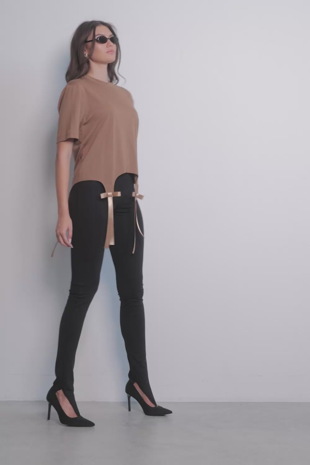 Tricou nuanța ciocolată cu fundite aplicate manual Charme